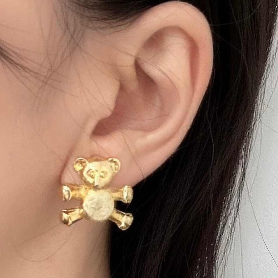 1980年代ヴィンテージ ゴールド テディベア イヤリング(イギリス製/クリップ式)