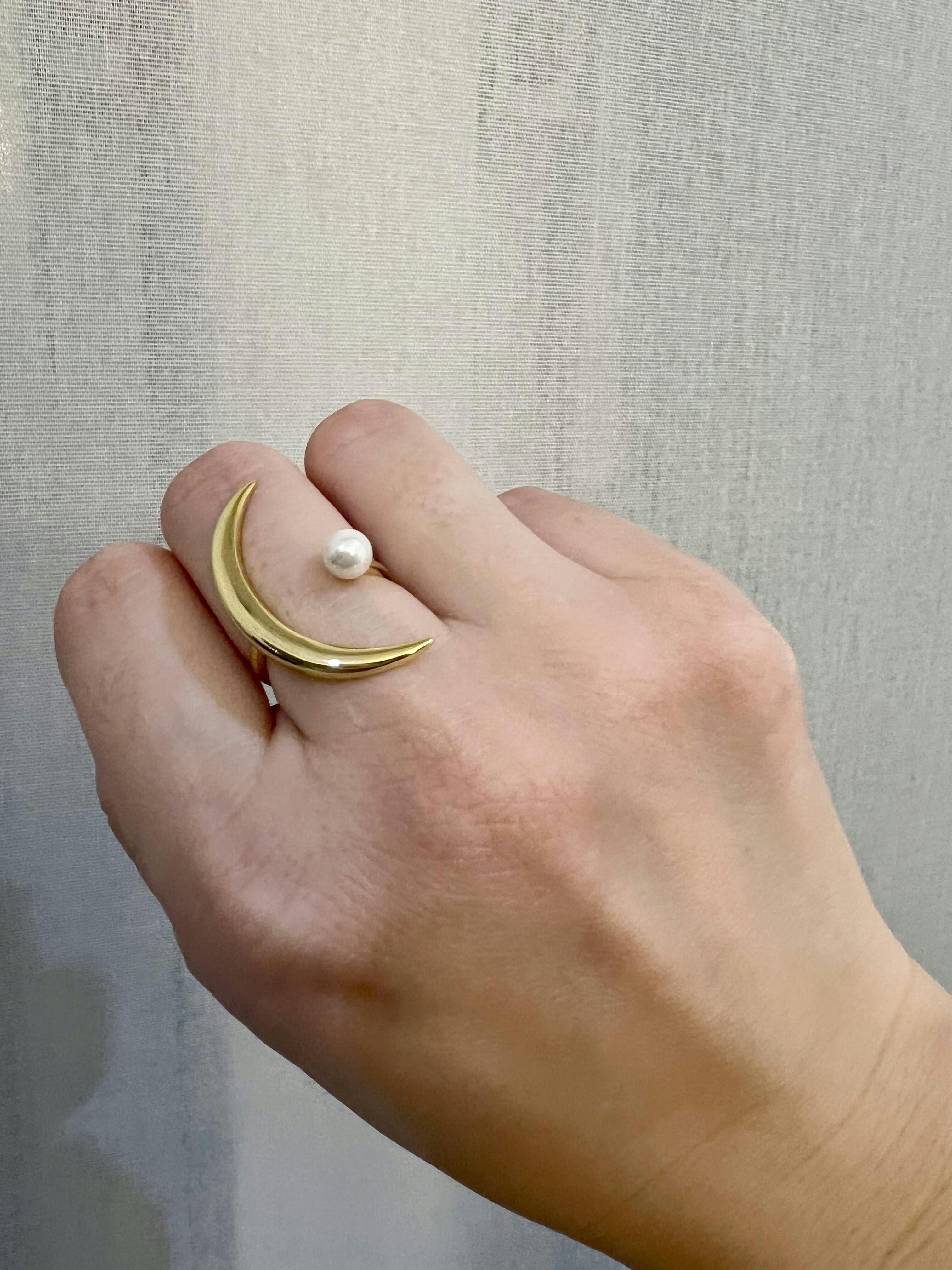 Inspired by the sparkling scene of moonlight and the stars in the summer night, the ring celebrates the minimal and timeless feature with the freshwater pearl- by Reflection