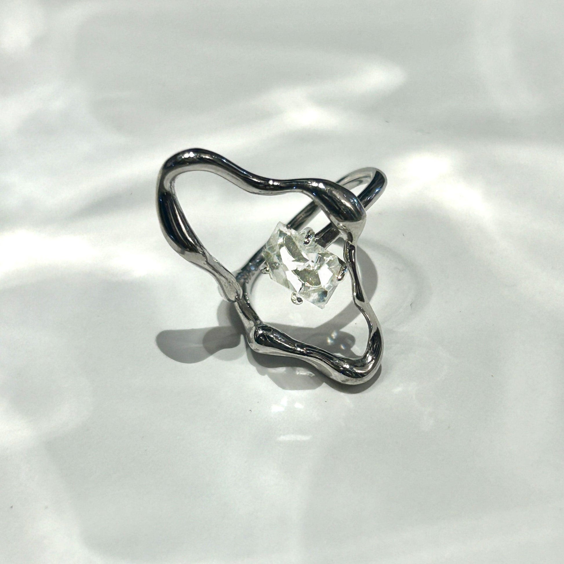 With its breathtaking sparkle and refined design, The Lake Sparkle Ring is more than just a piece of jewelry. It is Inspired by the shimmering sparkles on lake, this design ring features a Centre stone made of American Herkimer Diamond. Known for its purifying energy, the Herkimer Diamond brings a sense of tranquility, reminiscent of the stillness of water. By Reflection