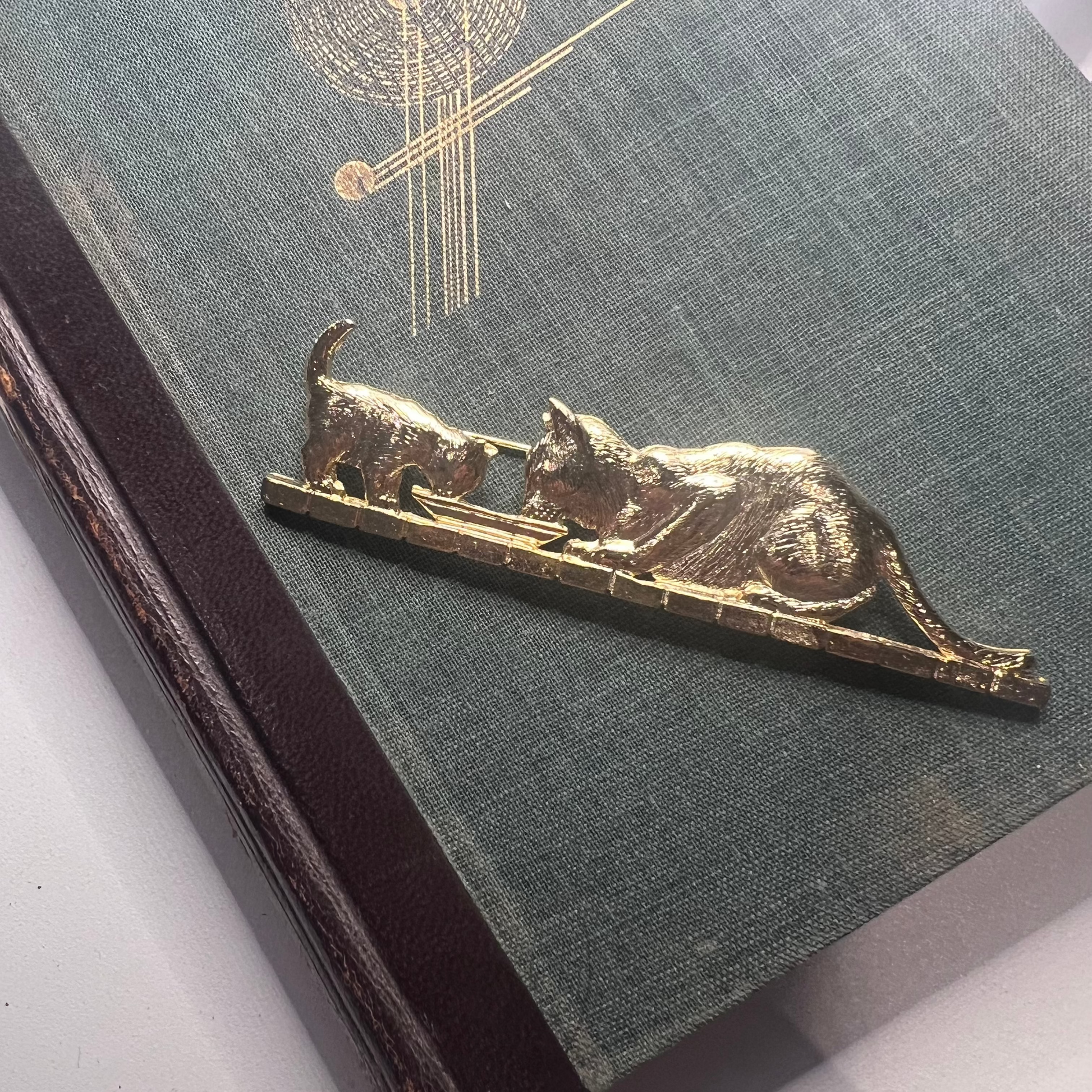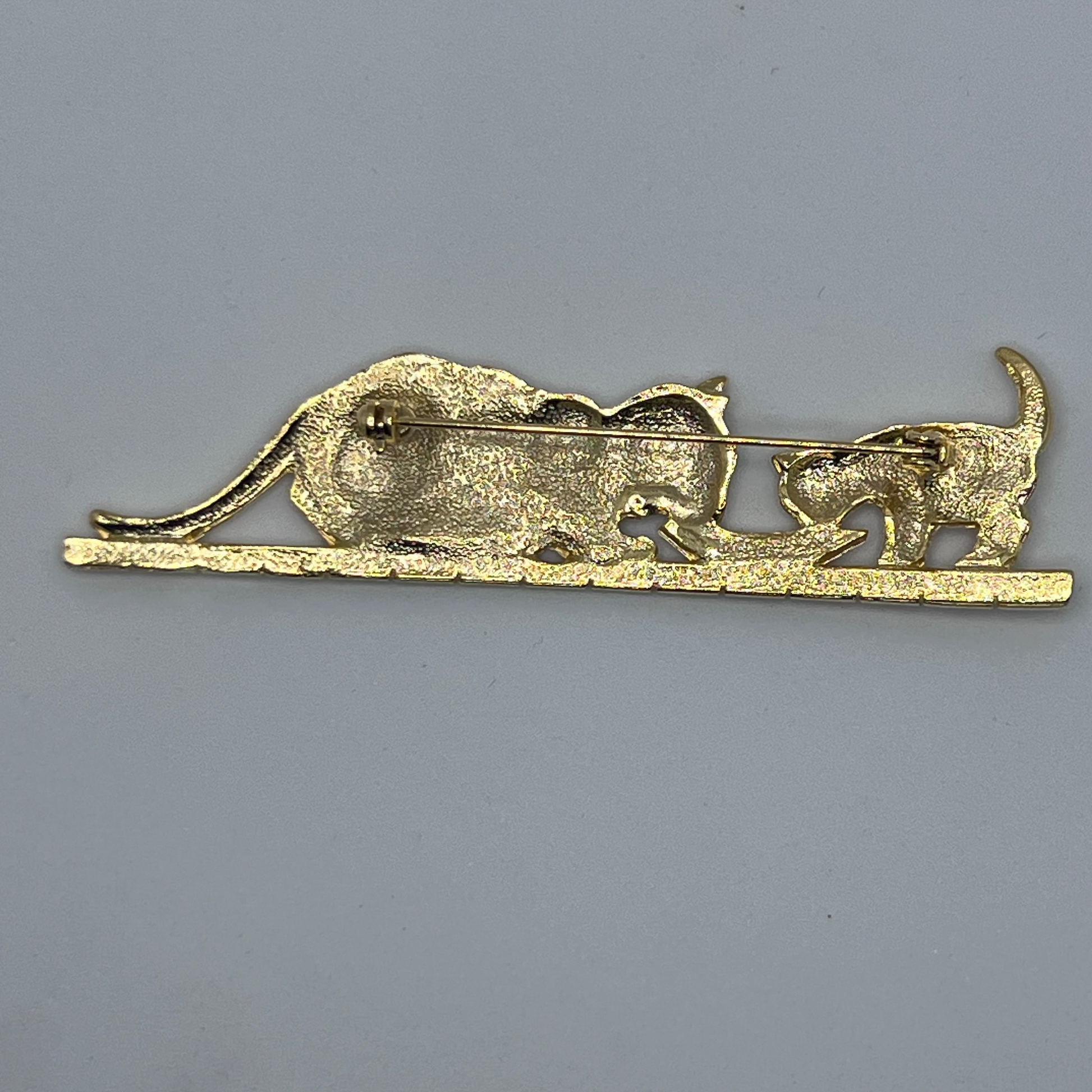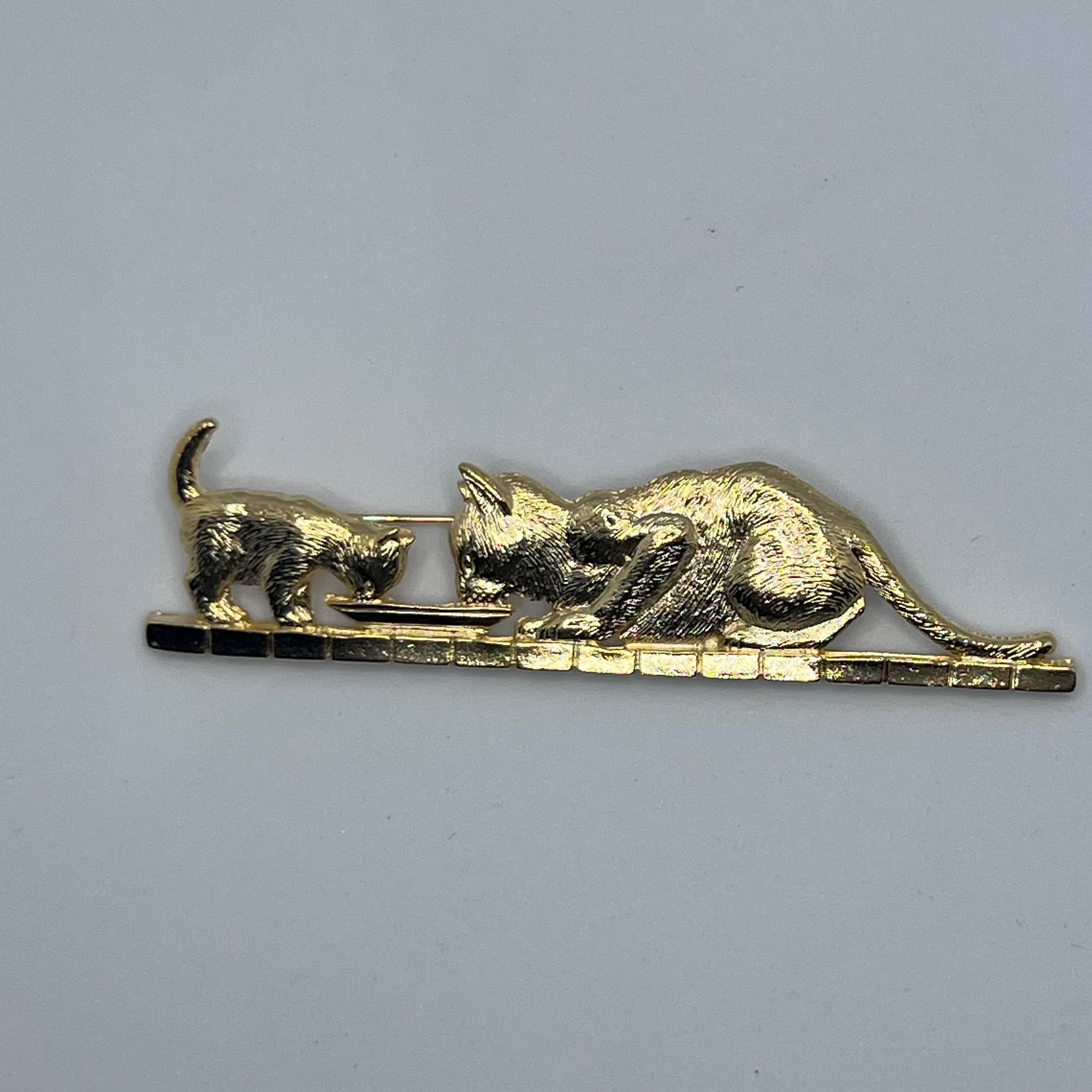 【デッドストック】ミルクを囲む猫の親子のヴィンテージブローチ|1980sイギリス