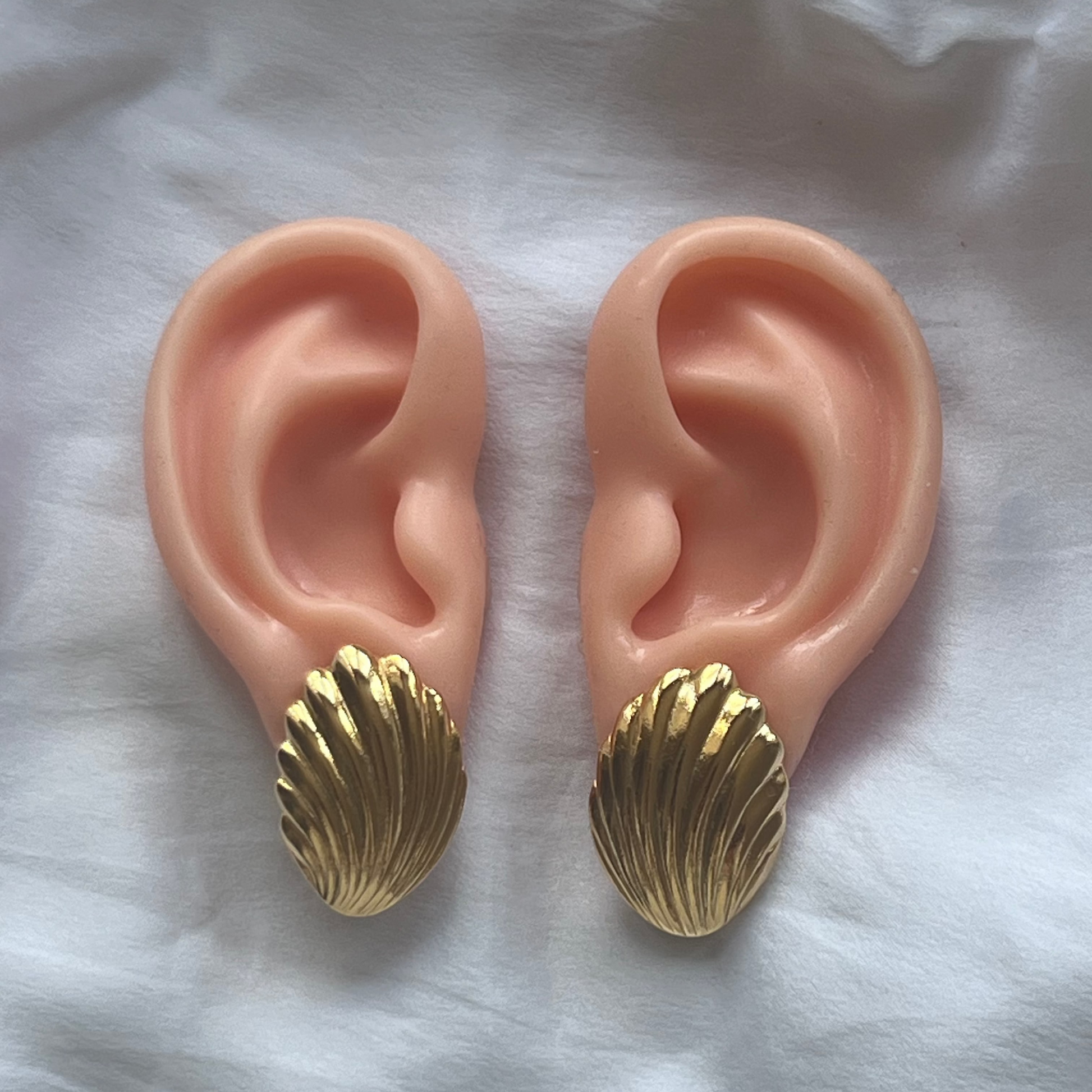 貝殻をモチーフにした、クラシックなデザインのヴィンテージピアスです。